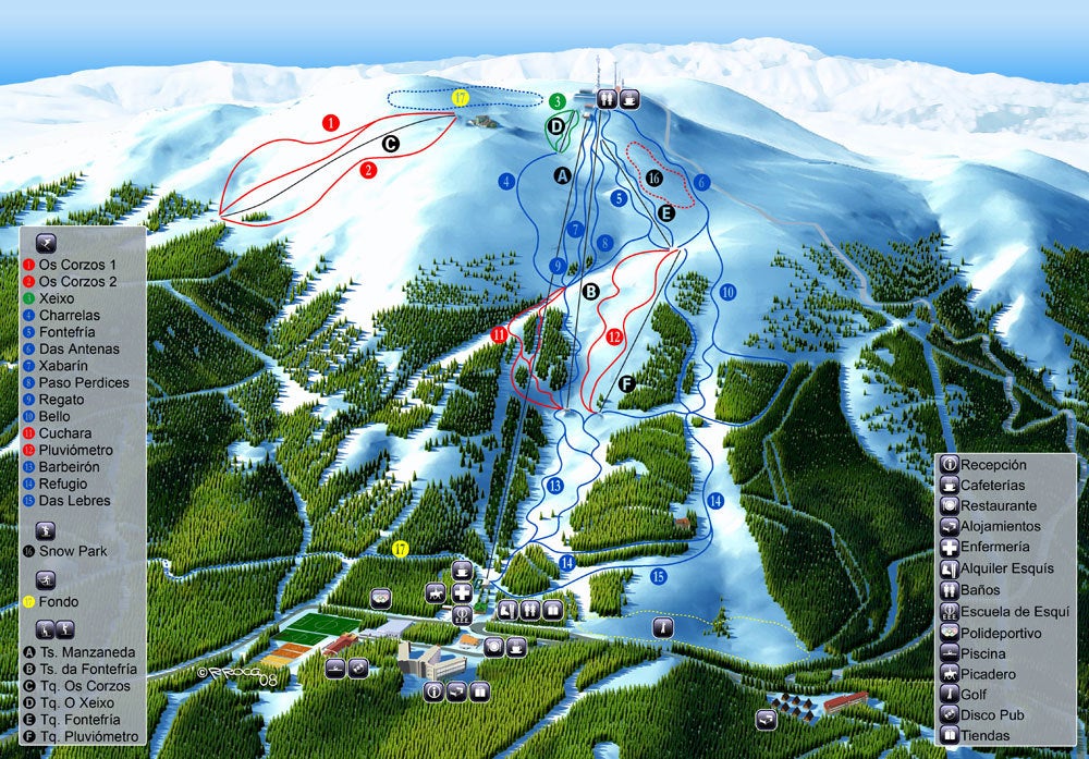 Se løyper og heiser i Manzaneda med vårt interaktive løypekart for skistedet. Planlegg dagen før du drar, eller naviger i fjellet mens du er der, med det nyeste løypekartet for Manzaneda.